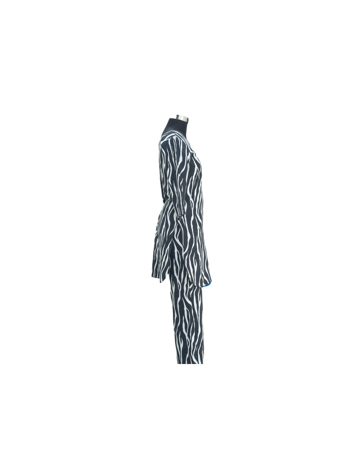 Crafted for comfort and effortless style, this suit set is ideal for daily wear, casual outings, or adding a touch of contemporary flair to your wardrobe. Embrace the wild side of fashion with this chic and versatile black and white striped outfit.