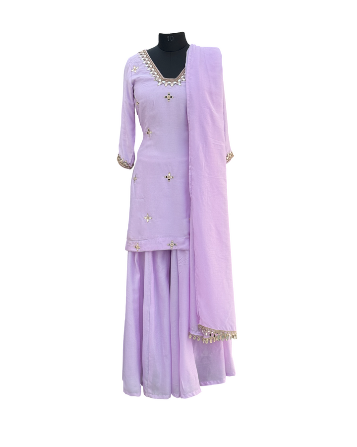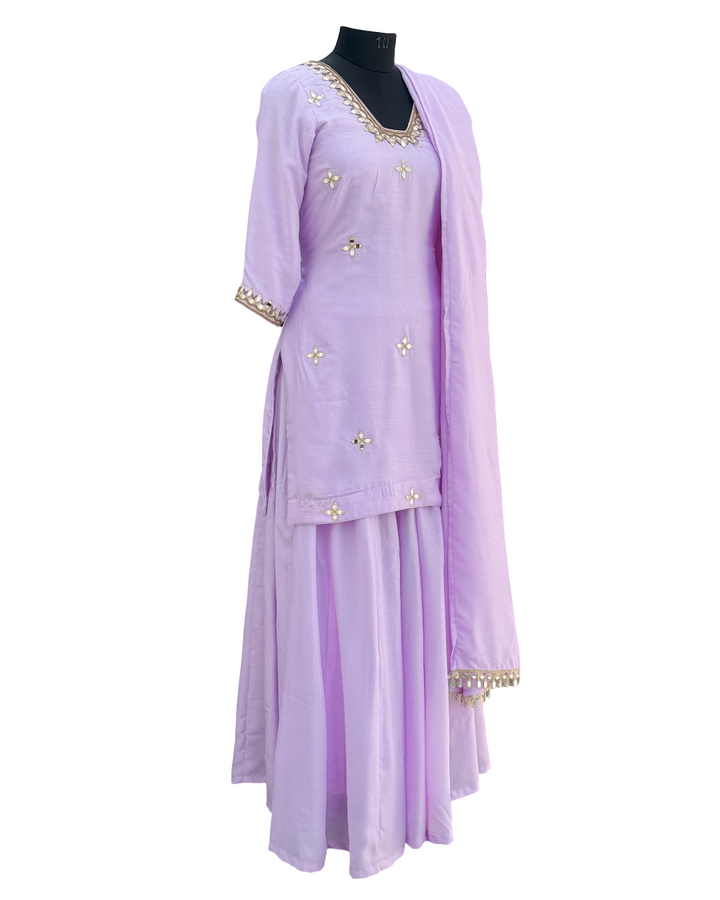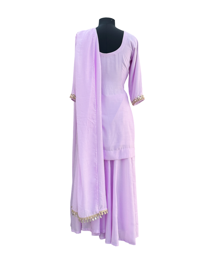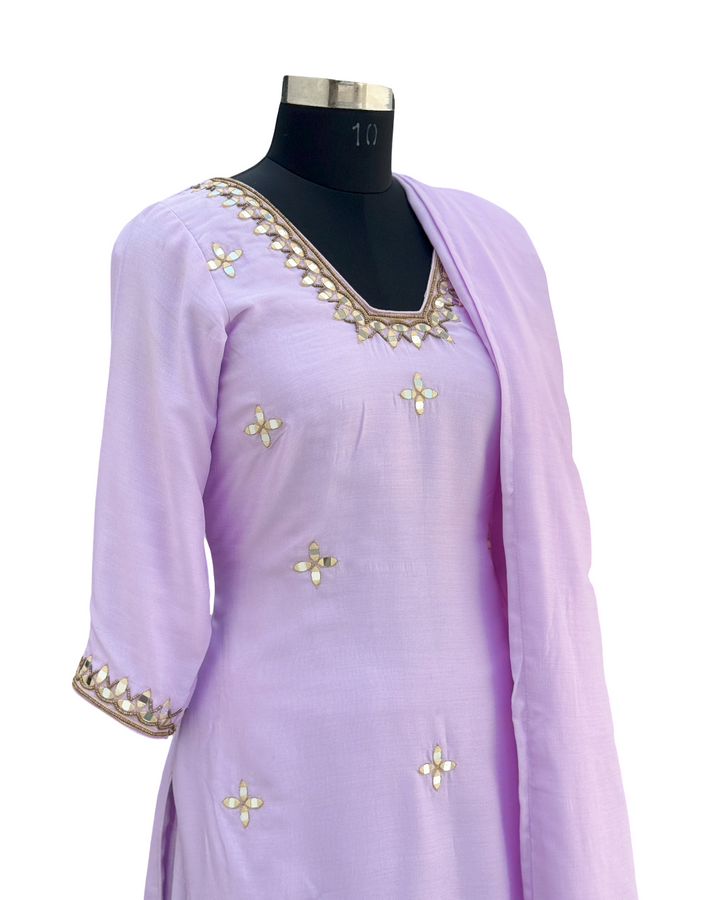Elegant Lavender Vichitra Silk Suit & Palazzo Set with Mirror & Beadwork and Chinon Dupatta