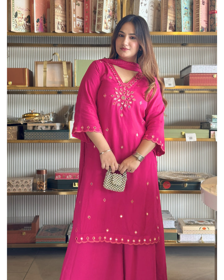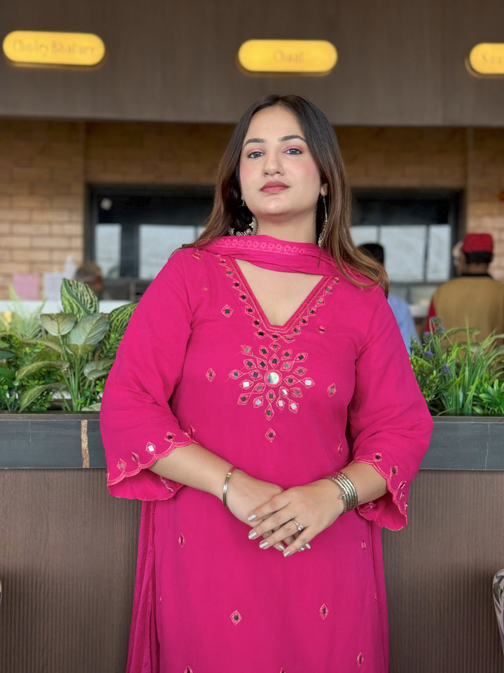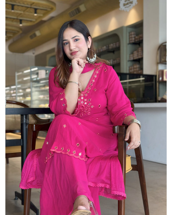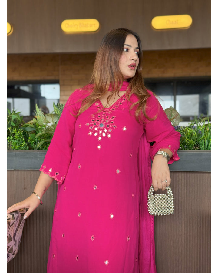 Fuchsia Pink Mirror Work Suit Set | Elegant Ethnic Wear for Women